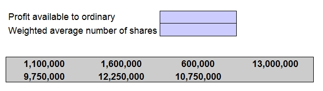 Place the correct figure into the box below to show the number that XY will use as its weighted average number of ordinary shares in the calculation of earnings per share for the year to 31 December 20X8.
