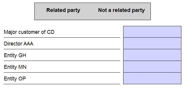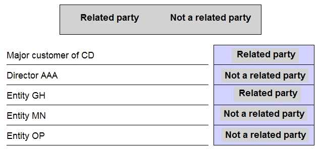 Identify which of the following are related parties of CD by placing the appropriate response against one.
