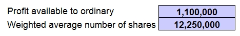 Place the correct figure into the box below to show the number that XY will use as its weighted average number of ordinary shares in the calculation of earnings per share for the year to 31 December 20X8.