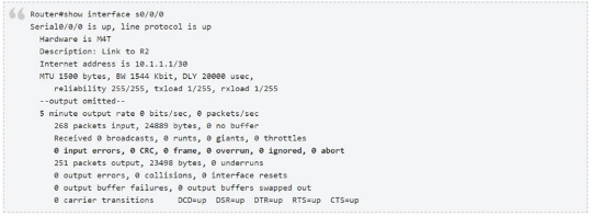 The output below show the interface counters with the “show interface s0/0/0” command: