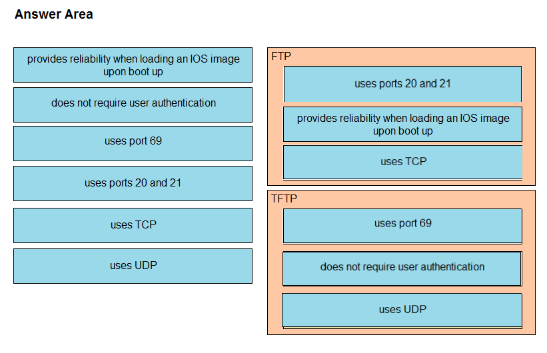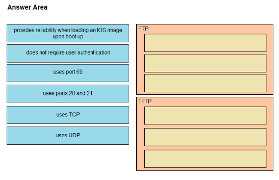 Drag and drop the descriptions of file-transfer protocols from the left onto the correct protocols on the right.