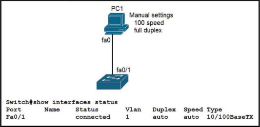 Refer to the exhibit. The link between PC1 and the switch is up, but it is performing poorly. Which interface condition is causing the performance problem?