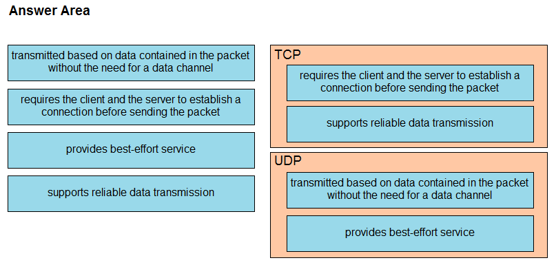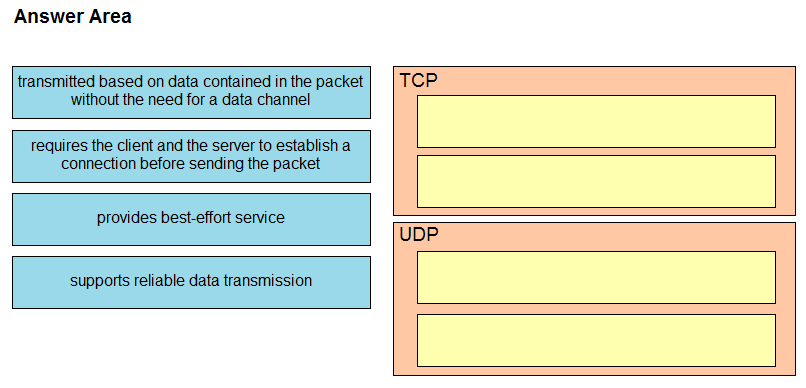 Drag and drop the TCP or UDP details from the left onto their corresponding protocols on the right.
