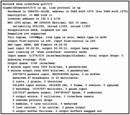 Refer to the exhibit. What is a reason for poor performance on the network interface?
