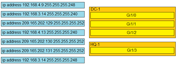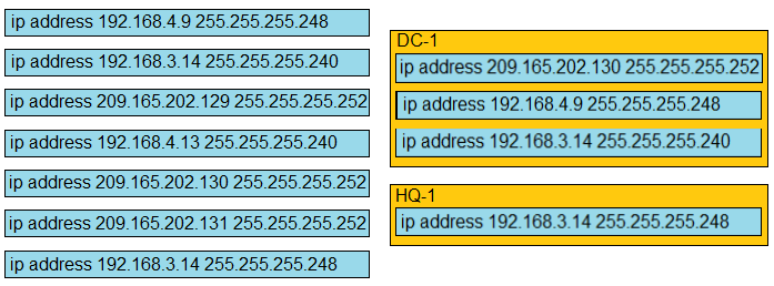 Refer to the exhibit. The IP address configurations must be completed on the DC-1 and HQ-1 routers based on these requirements: