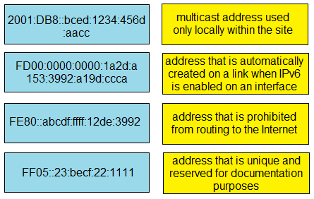 Drag and drop the IPv6 address types from the left onto their descriptions on the right.