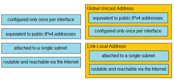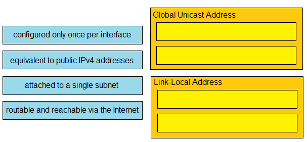 Drag and drop the IPv6 address type characteristics from the left to the right.