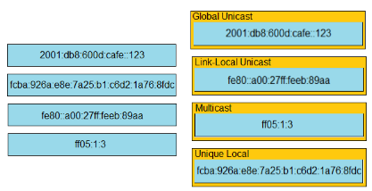 Drag and drop the IPv6 addresses from the left onto the corresponding address types on the right.