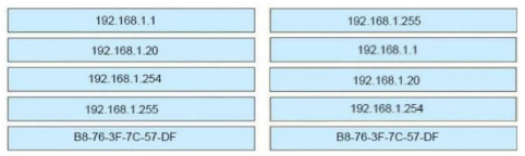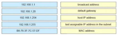 An engineer is tasked with verifying network configuration parameters on a client workstation to report back to the team lead. Drag and drop the node identifiers from the left onto the network parameters on the right.