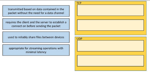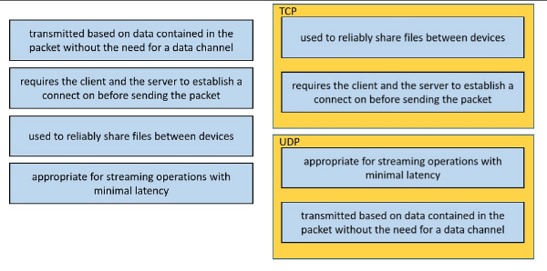 Drag and drop the TCP or UDP details from the left onto their corresponding protocols on the right.