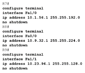 An IP subnet must be configured on each router that provides enough addresses for the number of assigned hosts and anticipates no more than 10% growth for new hosts. Which configuration script must be used?