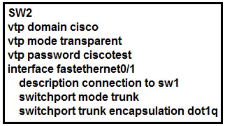 The VTP mode of SW2 is transparent so it only forwards the VTP updates it receives to its trunk links without processing them.