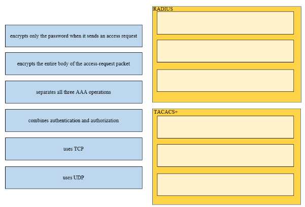Drag and drop the functions of AAA supporting protocols from the left onto the protocols on the right.