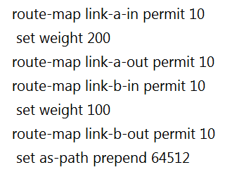 Refer to the exhibit. A network engineer for AS64512 must remove the inbound and outbound traffic from link A during maintenance without closing the BGP session so that there is still a backup link over link A toward the ASN.