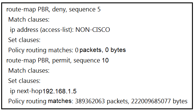 An engineer configured access list NON-CISCO in a policy to influence routes.