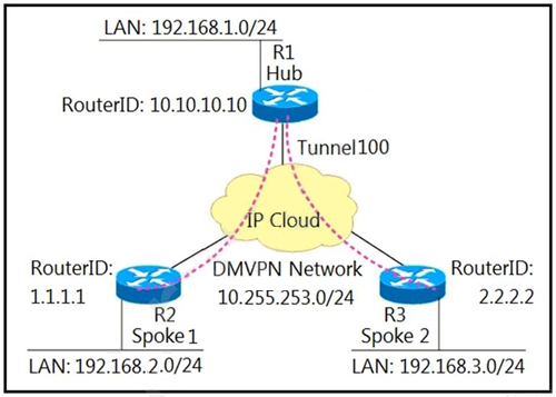 Refer to the exhibit. A network administrator sets up an OSPF routing protocol for a DMVPN network on the hub router.