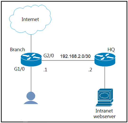 Refer to the exhibit. The branch router is configured with a default route toward the Internet and has no routes configured for the HQ site that is connected through interface G2/0. The HQ router is fully configured and does not require changes.