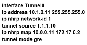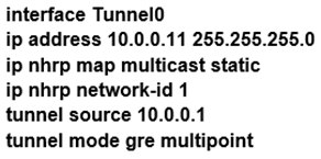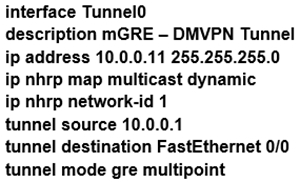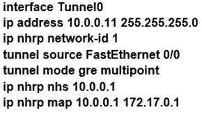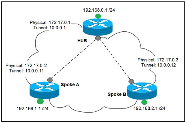 Refer to the exhibit. Which interface configuration must be configured on the spoke A router to enable a dynamic DMVPN tunnel with the spoke B router?