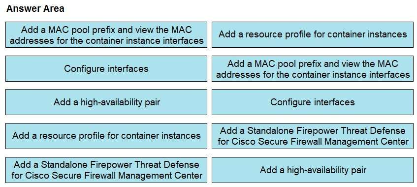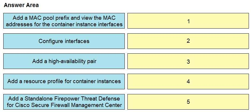 A network engineer is deploying a Cisco Firepower 4100 appliance and must configure a multi-instance environment for high availability. Drag and drop the actions from the left into sequence on the right for this configuration.