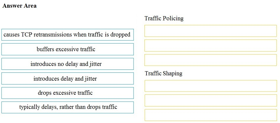 Drag and drop the descriptions from the left onto the correct QoS components on the right.