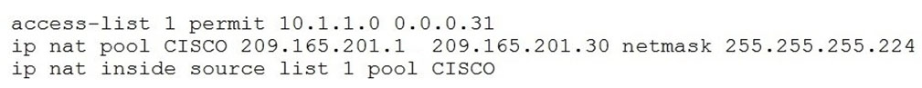 3. The 10.1.1.0/27 subnet is assigned as the inside local addresses.