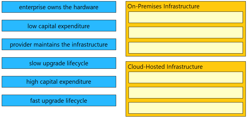 Drag and drop the characteristics from the left onto the infrastructure types on the right.