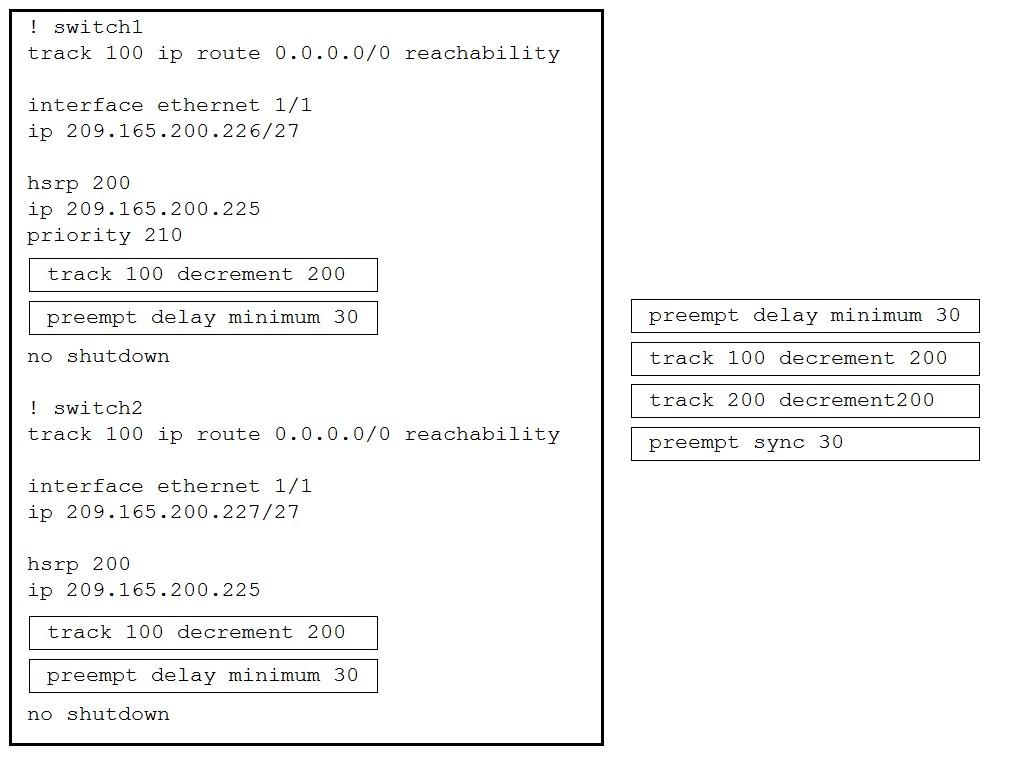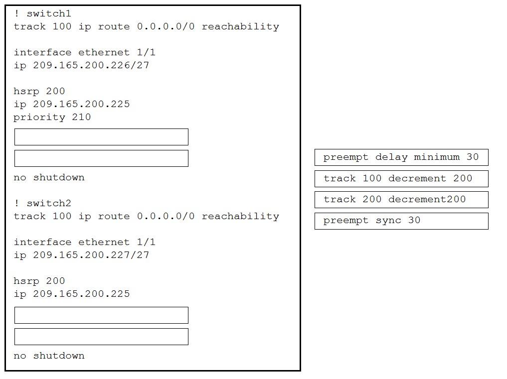 An engineer must configure the HSRP protocol to implement redundancy using two Cisco Nexus Series Switches, in addition, me HSRP must meet these requirements: