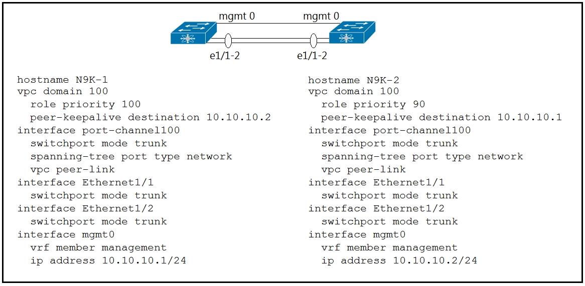 Refer to the exhibit. Which action completes the vPC domain implementation?