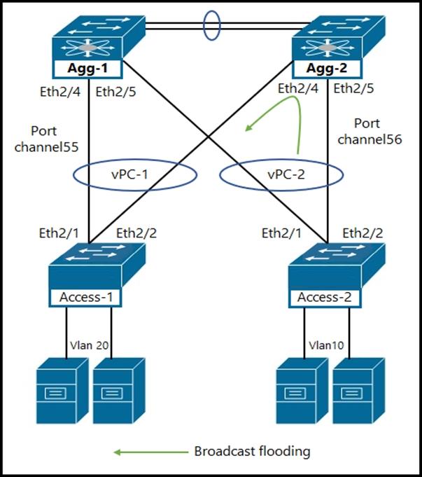 Refer to the exhibit. What happens to the broadcast traffic when it reaches aggregation switches?