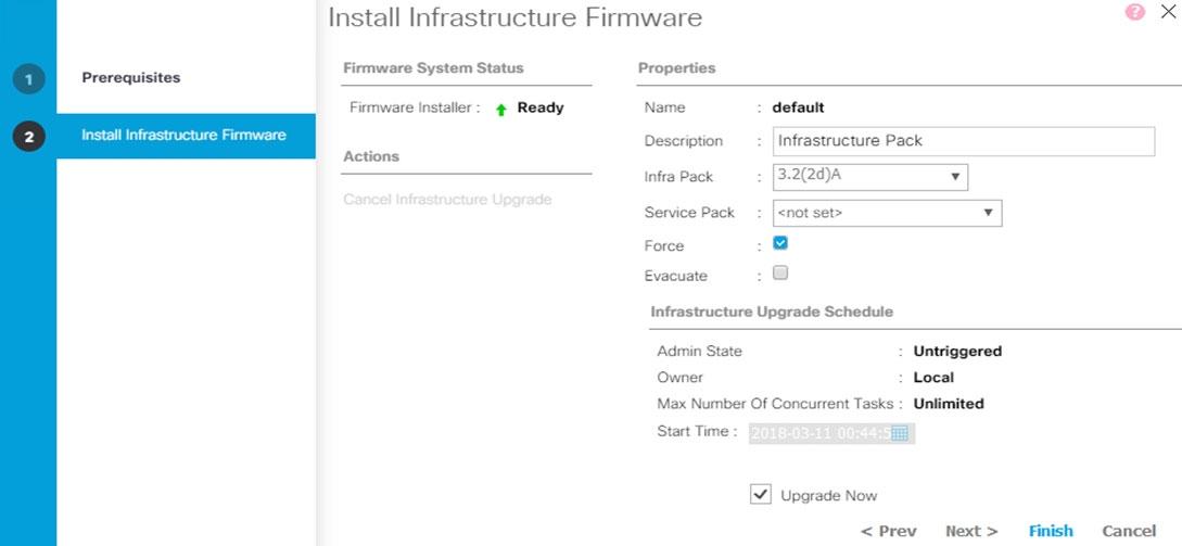 Install Infrastructure Firmware - Uses the Cisco UCS Infrastructure Software Bundle to upgrade the infrastructure components, such as the fabric interconnects, the I/O modules, and Cisco UCS Manager.