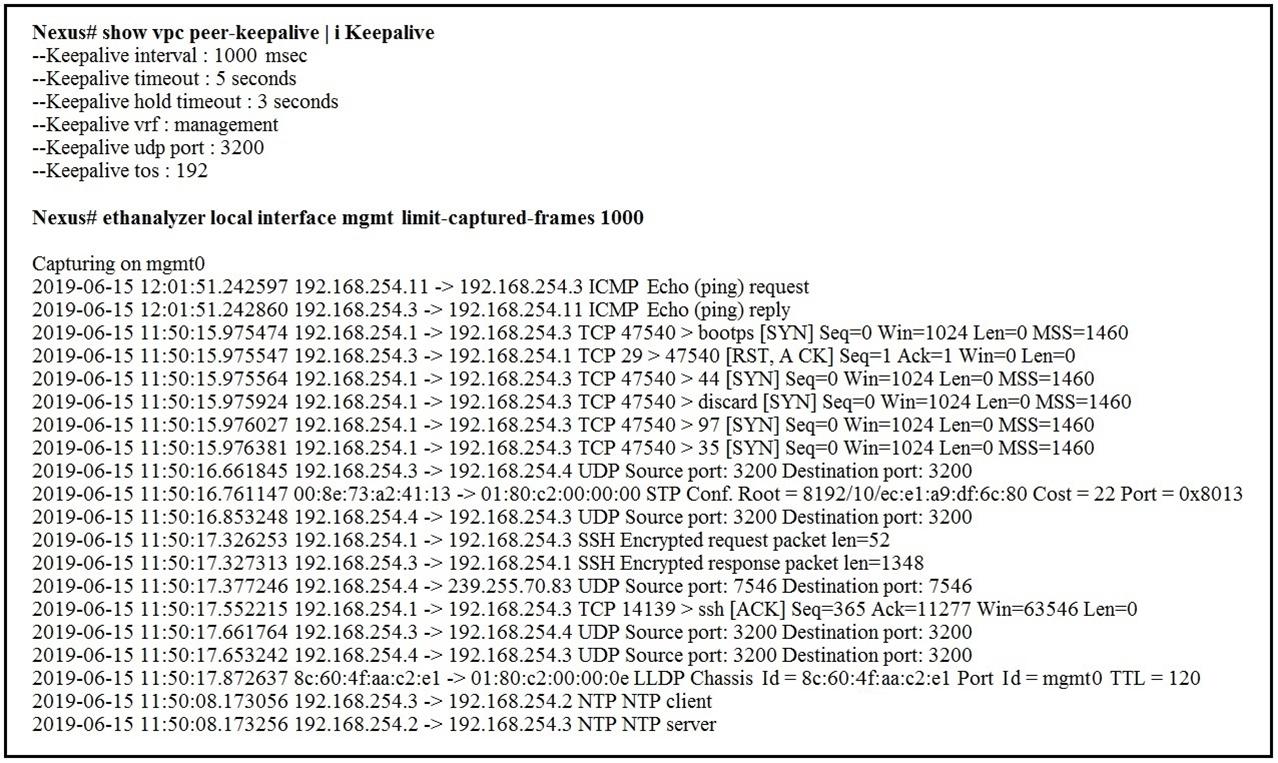A flapping link issue has been reported on the vPC keepalive link. A packet capture has been activated on the Cisco Nexus switch.