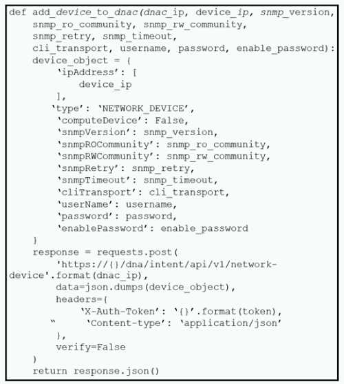 What is the result of this Python script of the Cisco DNA Center API?