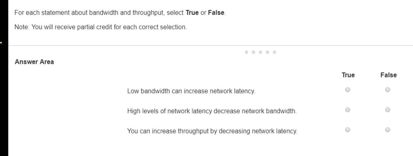 For each statement about bandwidth and throughput, select True or False.