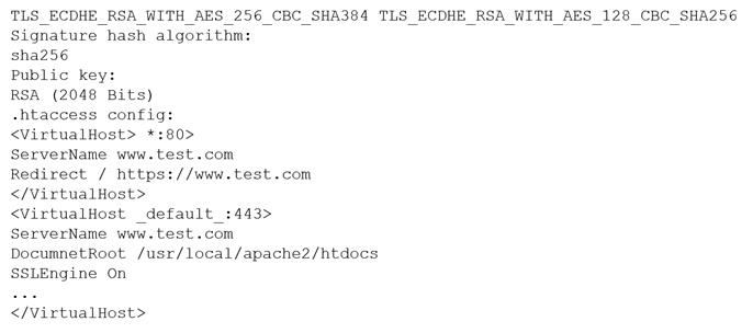 A customer reports being unable to connect to a website at www.test.com to consume services. The customer notices the web application has the following published cipher suite: