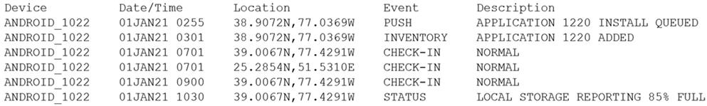 Device event logs sourced from MDM software as follows: