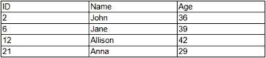 Each row in the table (excluding the header row) represents a record in the database schema. The table has 4 data rows (John, Jane, Allison, Anna), so the number of records is 4.