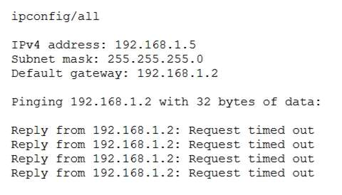 After configuring IP networking on a newly commissioned server, a server administrator installs a straight- through network cable from the patch panel to the switch. The administrator then returns to the server to test network connectivity using the ping command. The partial output of the ping and ipconfig commands are displayed below: