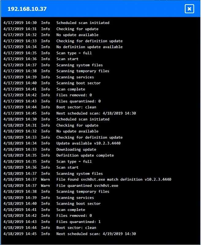 Click on each host and firewall. Review all logs to determine which host originated the infection and then identify if each remaining host is clean or infected.