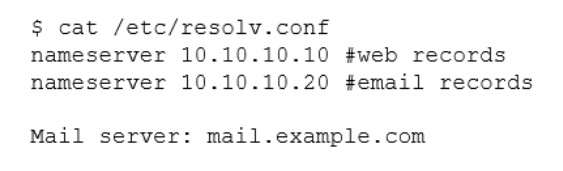A Linux engineer set up two local DNS servers (10.10.10.10 and 10.10.10.20) and was testing email connectivity to the local mail server using the mail command on a local machine when the following error appeared:The local machine DNS settings are:Which of the following commands could the engineer use to query the DNS server to get mail server information?