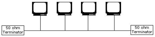 Answer option D is incorrect. Bus topology is a type of physical network design where all computers in the network are connected through a single coaxial cable known as bus. This topology uses minimum cabling and is therefore, the simplest and least expensive topology for small networks. In this topology, 50 ohm terminators terminate both ends of the network. A Bus topology network is difficult to troubleshoot, as a break or problem at any point along the cable can cause the entire network to go down.