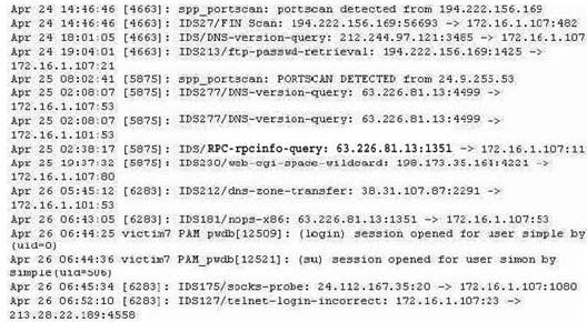 passive OS fingerprinting (which should tell them the OS from log captures): can they tell a SQL injection attack signature; can they infer if a user ID has been created by an attacker and whether they can read plain source – destination entries from log entries.)