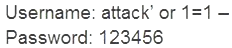 2. select * from Users where UserName = ‘attack’ or 1=1 -- and UserPassword = ‘123456’