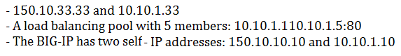 A BIG-IP has the following objects configured: A SNAT pool with 2 members: