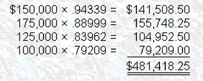 Thus, the answer is something greater than four years. After four years, an additional $18,581 .75 ($500,000-- $481 .418.25) is needed. The calculation for the fifth year is $74,726 ($100,000 x .74726). Consequently, the discounted payback period is approximately 4.25 years [4 + ($18581.75 + $74,726)].