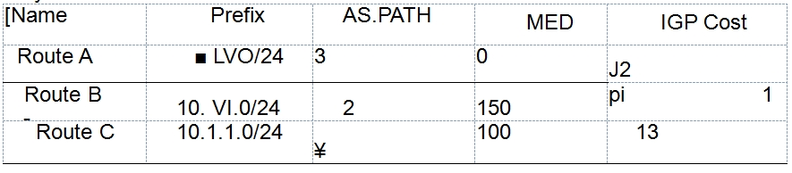 The routing attributes of the three routing entries are shown in the figure. Assuming that the next hops of the three routing entries are all reachable, when these three routing entries are