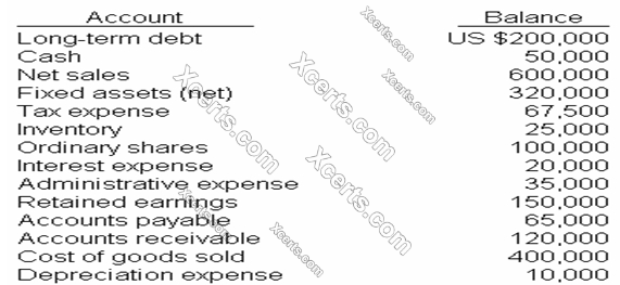 The entity has a dividend payout ratio of 25% of profit. Profit before taxes is US $85, 000 [$500, 000 sales - $250, 000 CGS - $25, 000 G&A expenses - $400, 000 LT debt x 10% interest rate) - $600, 000 fixed assets - 6 years)]. Hence, after-tax profit is US $42, 500 [$85, 000 x 1.0 - .5)], and the dividend payout is US $10, 625 ($42, 500 25%). During the year ended December 31. an entity had US $500, 000 in sales revenue and purchased US $150, 000 of inventory. The cost of goods sold was US $250, 000 for the year, and the entity incurred US $ 25.000 of general and administrative expenses. The January 1 opening balance sheet was as follows: