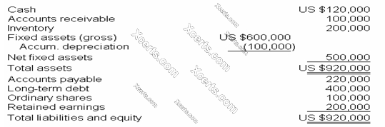 The cost of long-term debt financing is 10% per annum, payable in one installment on December 31 of each year. The entity has a 50% tax rate. The entity has a dividend payout ratio of 25%. The fixed assets were 1-year old at the start of the current year were originally estimated to have a 6-year useful life. and are being depreciated on the straight- line basis.