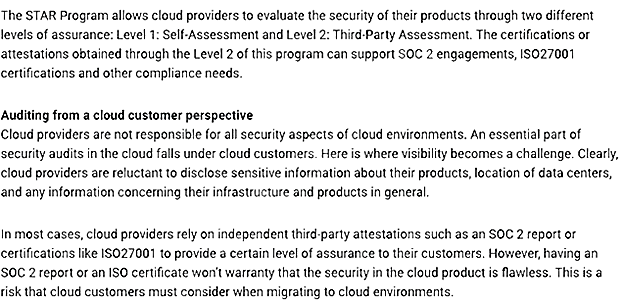 2. For efficiency reasons, use of its on-premises systems’ audit criteria to audit the cloud environment