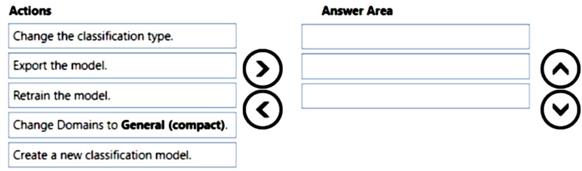 Which three actions should you perform in sequence? To answer, move the appropriate actions from the list of actions to the answer area and arrange them in the correct order.
