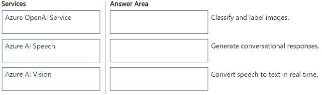 To answer, drag the appropriate service from the column on the left to its capability on the right. Each service may be used once, more than once, or not at all.